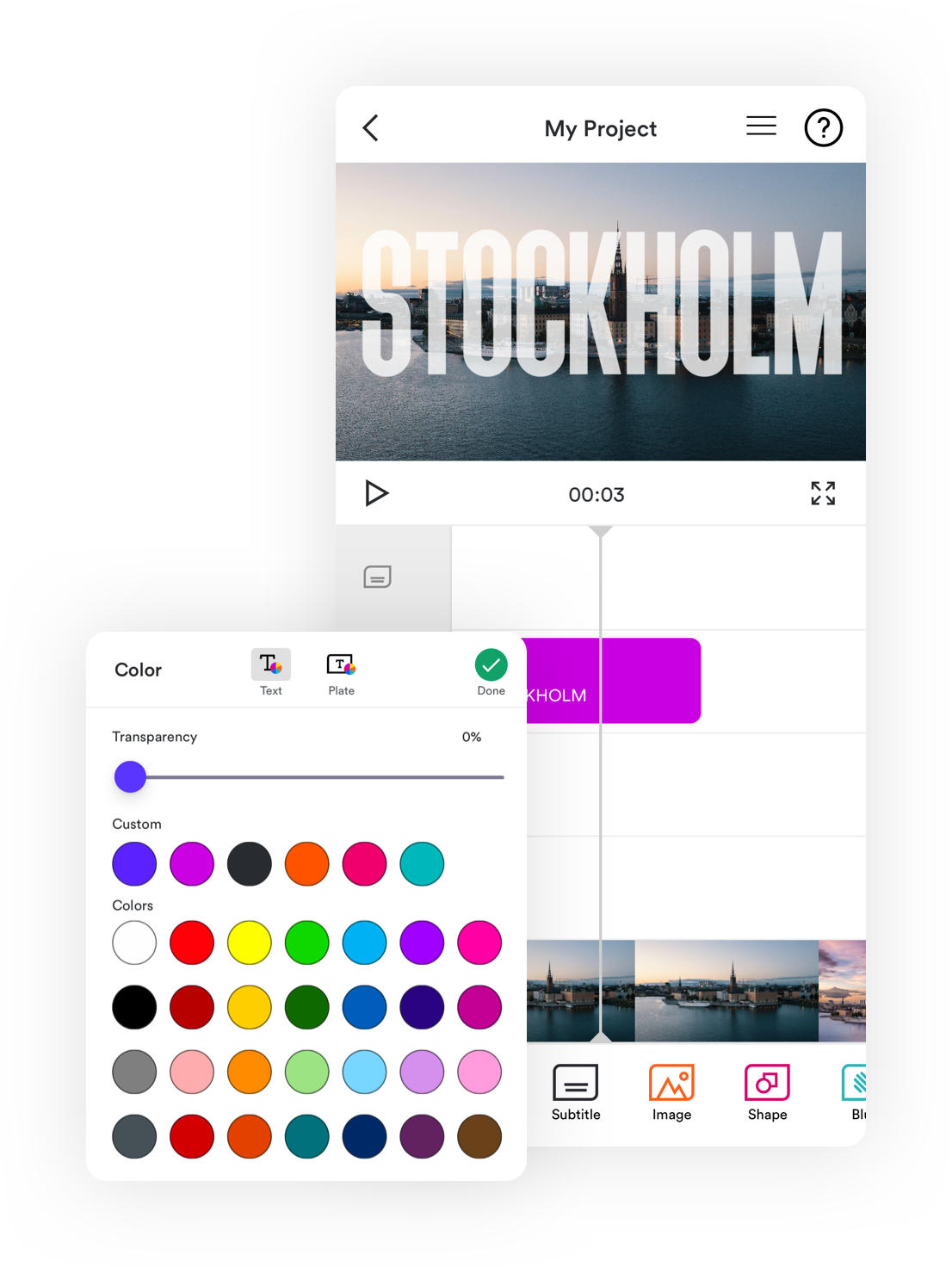 Skriv och placera text på mobilfilm. Textverktyget ger dig tillgång till många typsnitt och flera vikter.